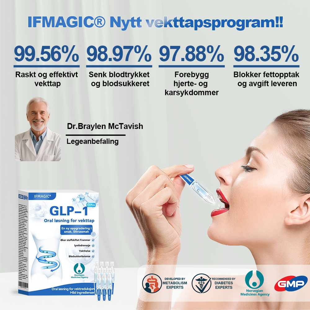 "Som endokrinolog er jeg forpliktet til å finne effektive og naturlige løsninger for metabolsk helse og vektkontroll. Etter omfattende forskning og kliniske studier med over 5000 deltakere, har jeg funnet ut at 𝐈𝐅𝐌𝐀𝐆𝐈𝐂® 𝐆𝐋𝐏-𝟏 𝐏𝐫𝐨 𝐎𝐫𝐚𝐥 𝐥ø𝐬𝐧𝐢𝐧𝐠 𝐟𝐨𝐫 𝐯𝐞𝐤𝐭𝐭𝐚𝐩 gir bemerkelsesverdige fordeler for stoffskifte, appetittkontroll og generell velvære. Denne formelen støtter naturlig GLP-1-aktivering, og bidrar til å regulere blodsukkernivået, dempe søtsug og forbedre fettforbrenningen. Den kraftige blandingen av eplecider Eddik, gurkemeie og andre naturlige ingredienser bidrar ikke bare til sunt vekttap, men fremmer også fordøyelseshelsen, styrker immunforsvaret og støtter langsiktig metabolsk balanse. Med støtte fra moderne medisinsk forskning er 𝐈𝐅𝐌𝐀𝐆𝐈𝐂® 𝐆𝐋𝐏-𝟏 𝐏𝐫𝐨 𝐎𝐫𝐚𝐥 𝐥ø𝐬𝐧𝐢𝐧𝐠 𝐟𝐨𝐫 𝐯𝐞𝐤𝐭𝐭𝐚𝐩 et pålitelig, vitenskapsdrevet valg for de som søker en naturlig og effektiv tilnærming til vektkontroll og generell helse.