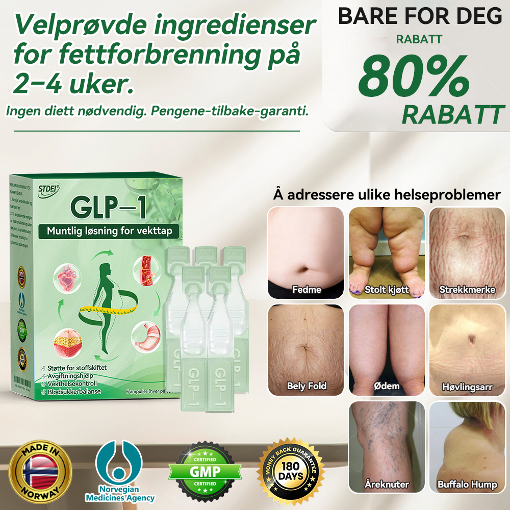 «Jeg var en gang på randen av døden på grunn av alvorlig fedme . Helsen min ble raskt dårligere – jeg hadde høyt blodtrykk , diabetes og ingen energi til å engang stå opp av sengen. Etter å ha prøvd utallige dietter og behandlinger uten hell, fant jeg 𝐒𝐓𝐃𝐄𝐈® 𝐆𝐋𝐏-𝟏 𝐌𝐮𝐧𝐭𝐥𝐢𝐠 𝐥ø𝐬𝐧𝐢𝐧𝐠 𝐟𝐨𝐫 𝐯𝐞𝐤𝐭𝐭𝐚𝐩. Først var jeg skeptisk, men jeg bestemte meg for å prøve det. Til min overraskelse gikk jeg ned 36 kilo i løpet av bare to måneder , blodtrykket mitt normaliserte seg , og jeg følte meg mer energisk enn noen gang før. Dette produktet reddet virkelig livet mitt og ga meg en ny sjanse til å leve et sunt og lykkelig liv .» – Sofie Johansen, Trondheim, Norge